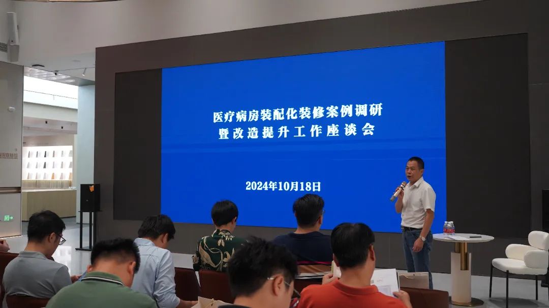 点击蓝字 关注我们 为贯彻落实国务院办公厅《医院病房改造提升行动方案(2024—2028年)》文件精神,全面改善病房环境与设施条件,充分展示我市医疗旧改领域装配化装修成果,10 月 18 日上午,市住房城乡建设局党组成员、总工程师刘王生带队对医疗病房装配化装修改造提升工作展开调研,市、区住建和卫健系统、医疗卫生机构负责人共 50 余人参加调研并出席座谈会,协会执行会长周锡武参加了会谈。 调研组实地考察了广东省装配化装修试点项目——复星禅诚医院白玉兰大楼医美中心以及天汇建科医疗展厅,充分了解系统集成化设计在项目上的具体应用,体验工厂化生产部品部件以干式工法进行改造的实际效果,感受无尘、无味、低噪、绿色的作业环境。