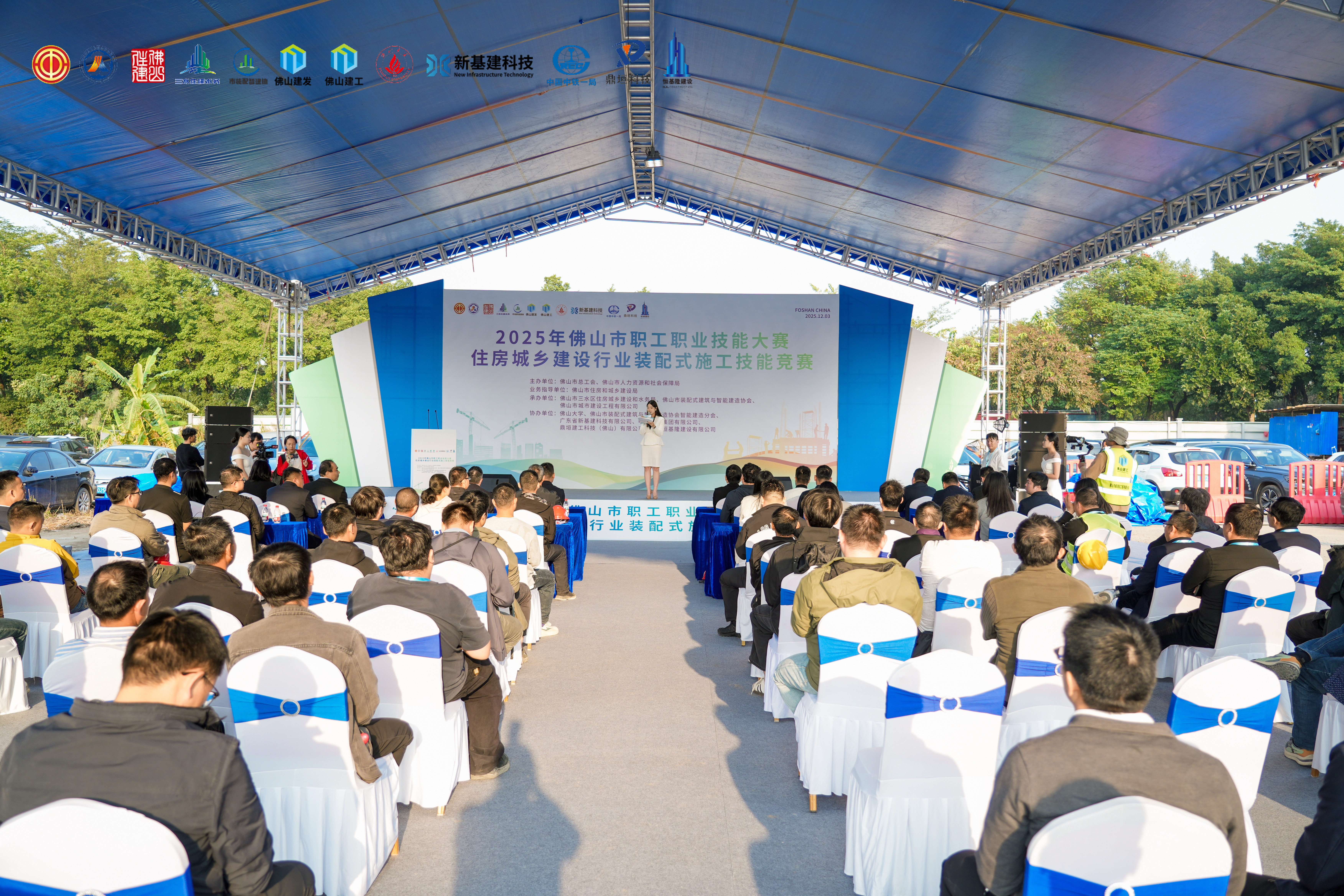 毫米匠心 装配未来|佛山市装配式建筑技能精英赛场竞技发表时间:2025-12-05 15:50 为深入推动行业转型与人才建设,由佛山市总工会、佛山市人力资源和社会保障局主办,佛山市住房和城乡建设局指导,佛山市三水区住房城乡建设和水务局、佛山市装配式建筑与智能建造协会、佛山市城市建设工程有限公司承办的“2025年佛山市职工职业技能大赛住房城乡建设行业装配式施工技能竞赛”于12月3日在佛山港三水港区金本作业区完成全部赛程,本次竞赛汇集了全市11支代表队的近50名技术精英。